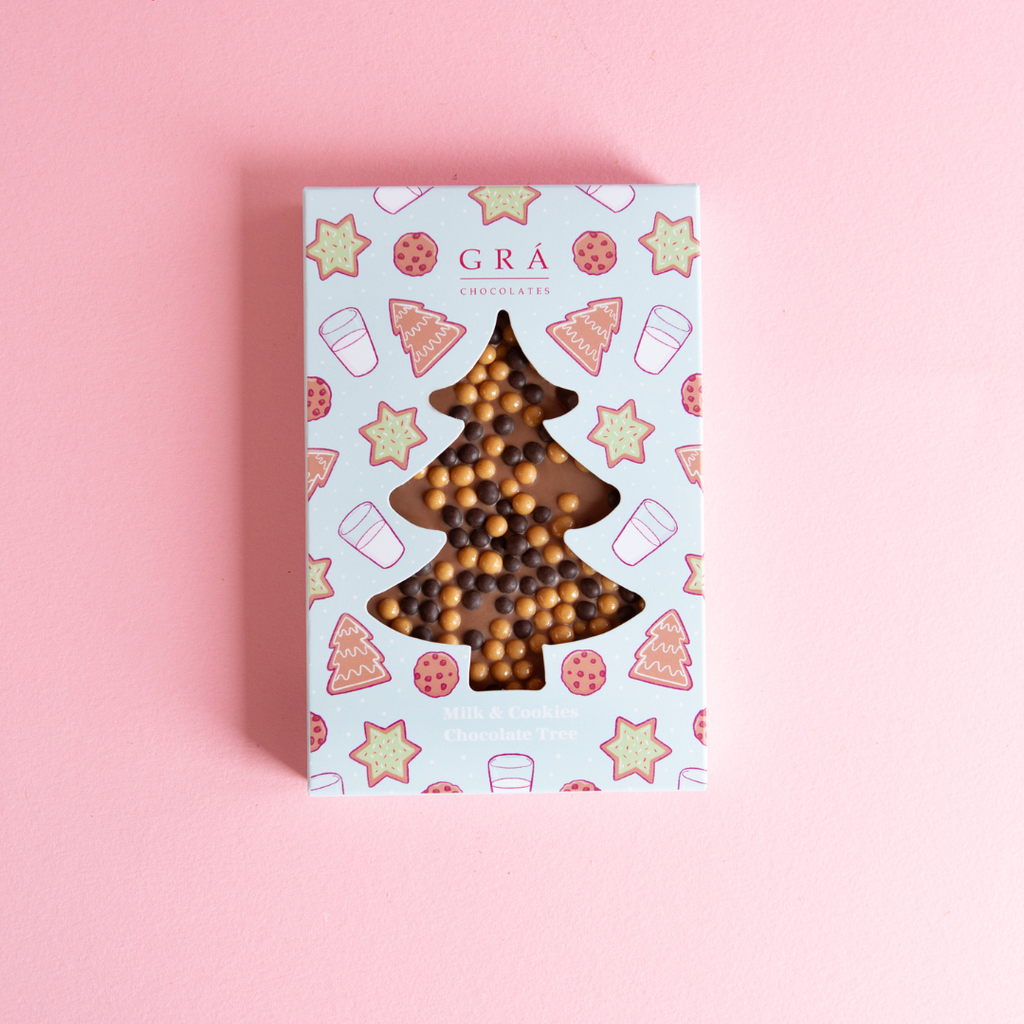 Milk & Cookies Chocolate Christmas Tree – A whimsical, festive showstopper made with the finest creamy milk chocolate and crunchy cocoa biscuit bites. Each bite brings a burst of sweetness and nostalgia, pure Christmas joy in edible form.
