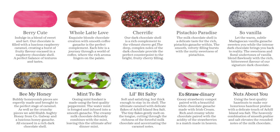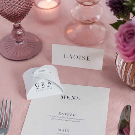 Our most luxurious chocolate party favours, this 2 piece box offers you a true taste of Grá Chocolates. Inside our chocolate favor boxes are two of some of our iconic flavors that you and your guests will enjoy. Choose from our 10 different flavours collection! Or choose a variety of flavours to cater to each guest based on their preference. Include these chocolate party favors in your wedding gift bags, bring them to an overnight getaway with friends, or spice up your corporate retreat. The most special chocolates for the most special days. Each chocolate is handmade in Galway, Ireland. Each box comes with two truffles.