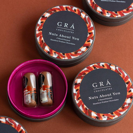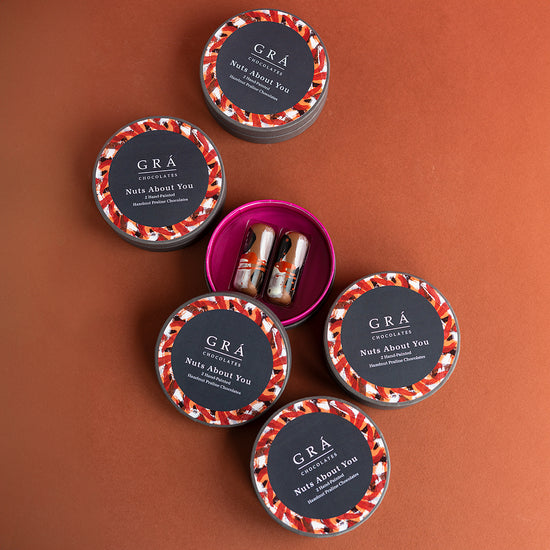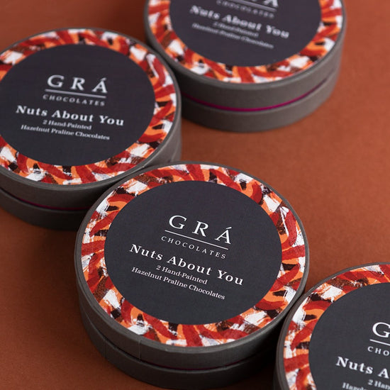 Nuts About You from the The Grá Chocolates Box, The best quality hazelnuts are used to make our luxurious hazelnut praline with a delicate touch of Achill Island Sea Salt. This is a heavenly combination of smooth praline with the salt that just elevates the rounded notes of the milk chocolate.